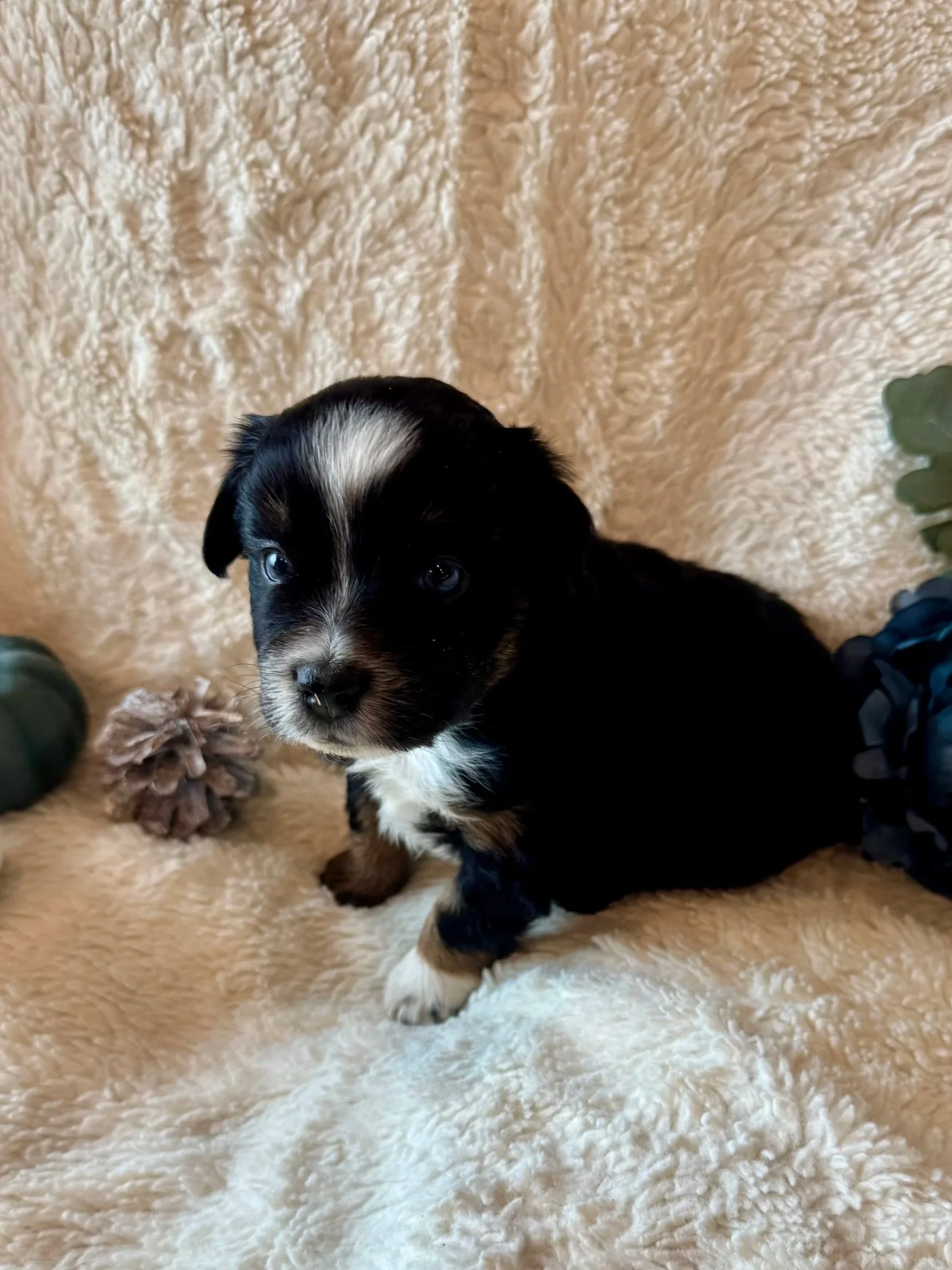 All puppies come with 8 week vaccines, deworming, microchip, and a puppy back!